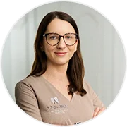 Mein Name ist Zuzanna Adamowicz und obwohl ich 12 Jahre meines Lebens an der Musikschule verbracht habe, begann ich mich in sehr jungen Jahren für Medizin und Zahnmedizin zu interessieren. Spätere Studien haben nicht nur mein Wissen vertieft, sondern auch meine ständige Neugier auf die Zahnmedizin, und jeder nachfolgende Patient bestätigt meine Überzeugung, den richtigen Weg eingeschlagen zu haben. Heute betrachte ich es als Berufung, Patienten zu helfen, die ich ehrlich, zuverlässig und mit größter Professionalität auszuüben versuche. Ich erweitere ständig mein Wissen und meine Fähigkeiten. Ich freue mich sowohl über erwachsene Patienten als auch über ihre kleinen Kinder. Meine Freizeit ist gefüllt mit: Kochen, Familie und dem Hund Rysiu.