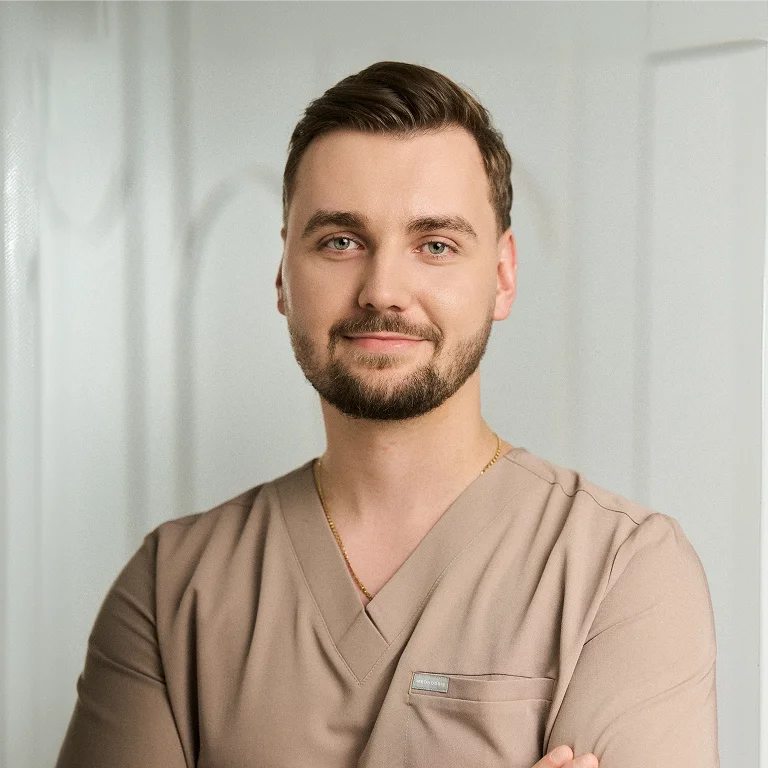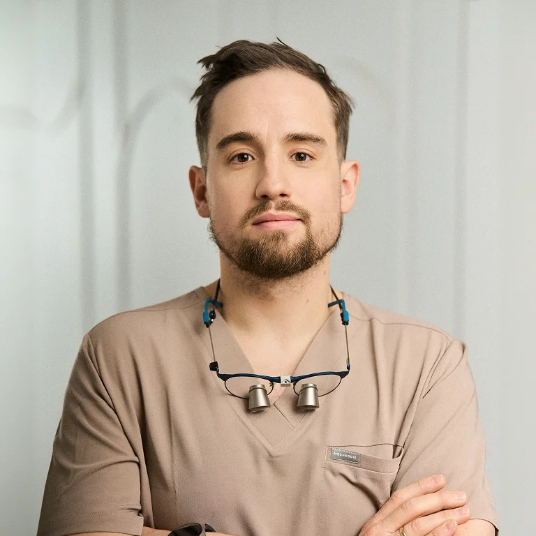 Ich bin Zahnarzt und glaube, dass eine effektive Behandlung damit beginnt, den Patienten zu verstehen. In meiner Arbeit verbinde ich moderne Zahnmedizin mit einem ganzheitlichen Gesundheitsansatz. Ich betrachte mehr als nur einen einzelnen Zahn und achte auf Komfort, Sicherheit und lang anhaltende Wirkung. Jeden Tag beschäftige ich mich mit komplexen Behandlungen — von der ästhetischen Restauration von Zähnen (Kompositfüllungen, Verbundverbundfurniere) über Prothetik (Kronen, Brücken, Prothesen) bis hin zu chirurgischen und implantologischen Eingriffen. Ich erstelle individuelle, mehrstufige Behandlungspläne, oft in Zusammenarbeit mit einem Team von Spezialisten, um das bestmögliche Ergebnis zu erzielen. Einen besonderen Platz in meiner Arbeit nehmen Patienten mit Behandlungsangst ein. Ich konzentriere mich in jeder Phase des Besuchs auf ruhige Kommunikation, Vertrauen und ein Gefühl der Kontrolle. Ich begleite den Patienten durch den gesamten Behandlungsprozess — damit er sich vom ersten Besuch an sicher fühlt und weiß, dass er in guten Händen ist. Ich habe in Deutschland Erfahrungen gesammelt und unter der Aufsicht eines Experten auf dem Gebiet der Implantologie gearbeitet. Ich habe auch den Lehrplan für Implantologie abgeschlossen und bin Mitglied der BDIZ EDI (European Association of Dental Implantologists). Ich spreche Deutsch und Englisch und habe umfangreiche Erfahrung in der Arbeit mit Patienten, die mit deutschen Krankenkassen abrechnen, was die Organisation der Behandlung und die Erledigung der Formalitäten erheblich erleichtert.