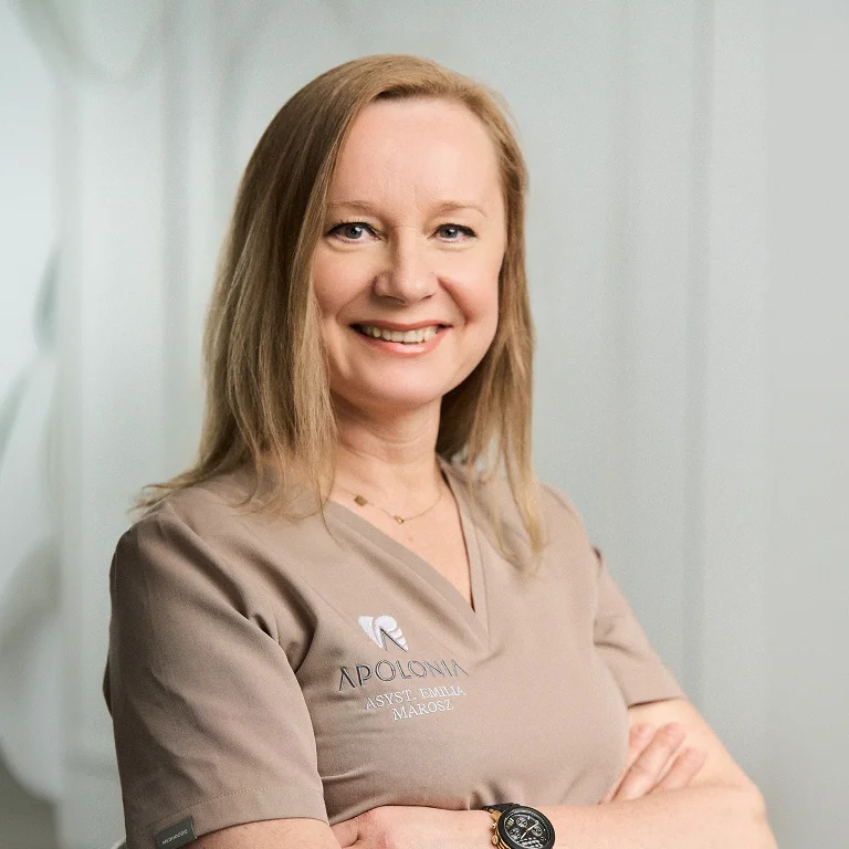 Ich bin Zahnarzt und Krankenschwester des Apolonia-Teams — ich verbinde langjährige klinische Erfahrung mit der täglichen Betreuung des Funktionierens der gesamten Klinik. Personalangelegenheiten, Verträge und organisatorische Fragen kommen auf mich zu, und gleichzeitig bin ich seit vielen Jahren ein vertrauenswürdiger Arzt für Stammpatienten, die zu mir zurückkehren, um eine ruhige und zuverlässige Versorgung zu erhalten. Ich habe mein Studium der Zahnmedizin abgeschlossen und in medizinischen Wissenschaften promoviert. Damit bestätige ich mein wissenschaftliches Engagement für die Entwicklung des Fachgebiets. Im Laufe meiner Karriere habe ich meine Qualifikationen ständig verbessert. Ich nehme an Kursen im Bereich der Zahnchirurgie, der konservativen Zahnheilkunde und des Managements einer Arztpraxis teil. Langjährige klinische Praxis und ein umfassender Überblick über die Funktionsweise der Praxis machen mich zu einer der wichtigsten Persönlichkeiten des Apollonia-Teams. In meiner Arbeit mit Patienten konzentriere ich mich auf Zahnchirurgie und konservierende Zahnheilkunde — ich nehme hauptsächlich Stammpatienten der Klinik auf, mit denen ich oft eine langjährige Beziehung habe. Neben dem Büro bin ich für den Bereich Verwaltung, Personal und Personal in Apollonia verantwortlich. Ich kümmere mich um Verträge, Rekrutierung, Onboarding neuer Mitarbeiter und Buchhaltung. Mir ist es zu verdanken, dass sich das Team in aller Ruhe auf die Patienten konzentrieren kann und die Klinik auf geordnete und humane Weise funktioniert. Ich führe die Behandlung ruhig und ohne Eile durch und achte immer darauf, was der Patient gerade fühlt. In Bezug auf das Team bin ich die Person, zu der Sie sowohl in einer professionellen Angelegenheit als auch für gute Ratschläge kommen. Ich verbinde die Professionalität des Arztes mit Herzlichkeit und Sensibilität, was in keinem Attest zu erfassen ist — und was Apollonias Patienten und Kollegen täglich schätzen.