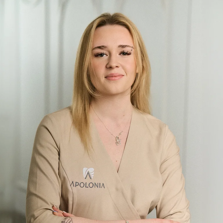 Als Absolventin der Pommerschen Medizinischen Universität (2023) richtet sie ihre berufliche Entwicklung auf Parodontologie, Zahnchirurgie und ästhetische Medizin aus. Er verbessert ständig seine Qualifikationen und nimmt an zahlreichen Kursen und Konferenzen teil, um Patienten moderne Behandlungsstandards zu bieten. In seiner Arbeit konzentriert er sich auf einen ganzheitlichen Ansatz — er beschränkt sich nicht auf die Behandlung von Symptomen, sondern sucht nach der Ursache des Problems. Das Wichtigste für sie sind der Patient und seine Bedürfnisse. Deshalb setzt sie bei jedem Besuch auf ein aufmerksames Zuhören und ein vollständiges Verständnis der Erwartungen. Mit einem Lächeln sorgt sie für eine angenehme, stressfreie Atmosphäre, dank der sie auch mit kleinen Patienten einen guten Kontakt knüpft. Ihre Priorität ist es, Professionalität mit Empathie zu verbinden, damit die Behandlung immer effektiv und komfortabel ist. Ich behandle jeden Patienten individuell, versuche genau seine Bedürfnisse zu verstehen und gemeinsam den optimalen Behandlungsplan zu finden. Ich wünsche mir eine entspannte, sichere Atmosphäre im Büro, in der sich der Patient gehört und umsorgt fühlt. Persönlich interessiere ich mich für Fußball und Skifahren.